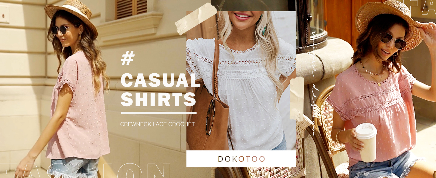 - Dokotoo womens crew neck crochet lace shirts is made with high-quality fabric. Soft, lightweight and comfortable to wear